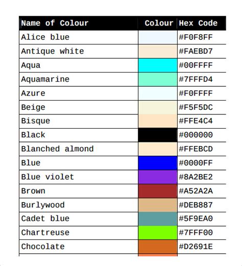 Universal Color Codes - Use our web safe, material design and flat design color chart to find the perfect color combination for your website. Never choose the wrong color again. Here is a list of top 100 web safe html color codes with color name, hex code, rgb code and hsl value to use in your projects and designs. Take it for a spin!.
